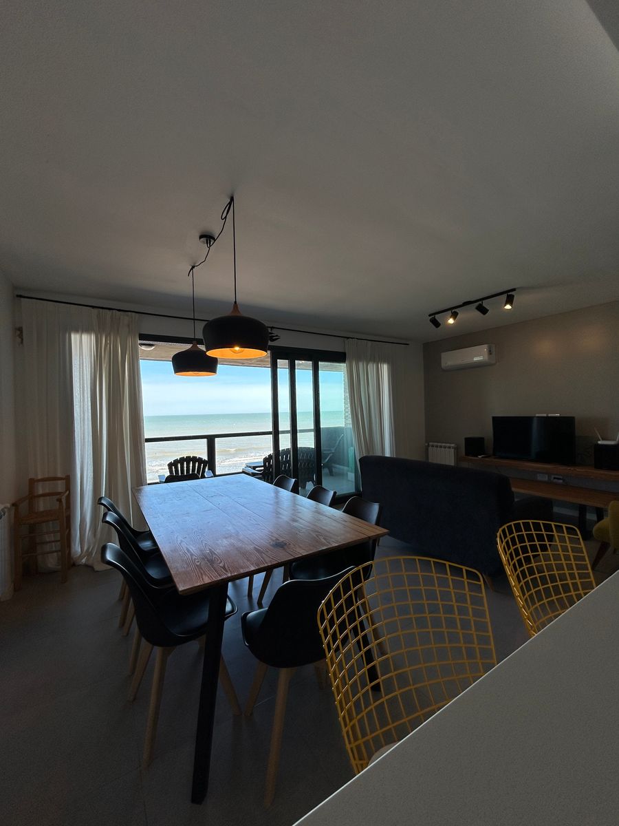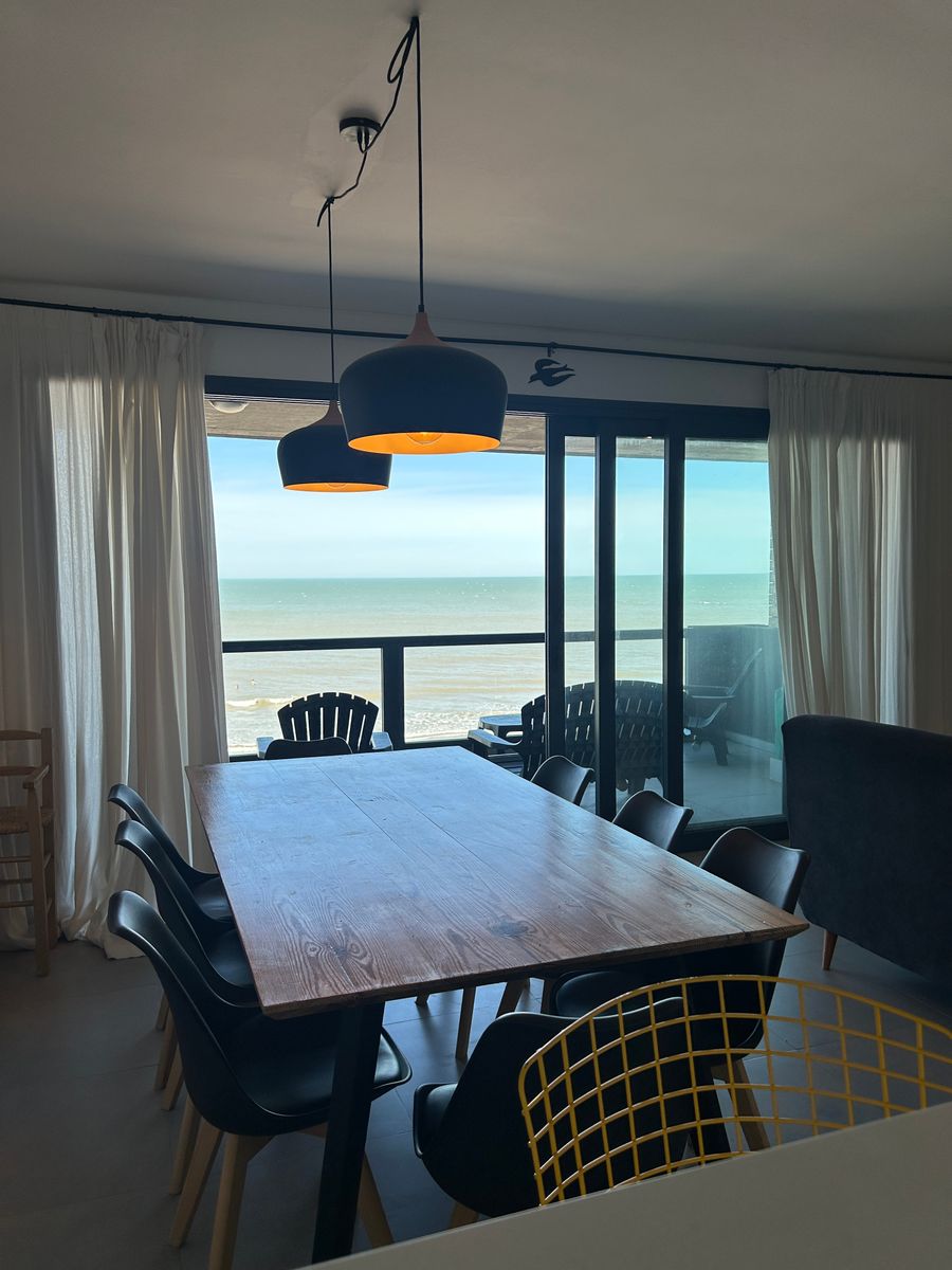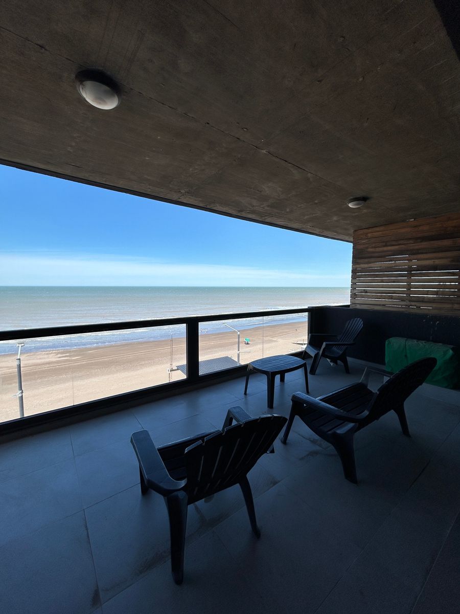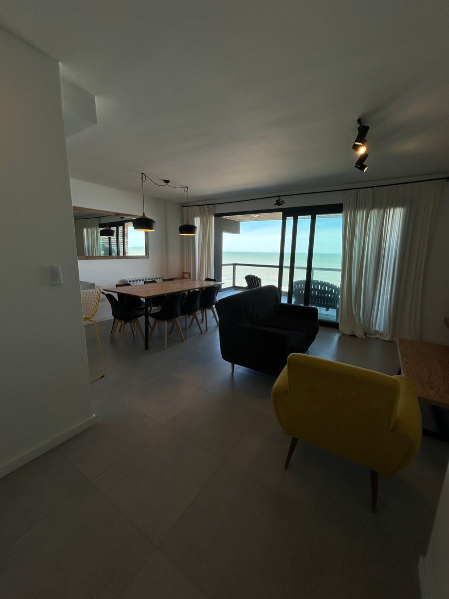 Departamento frente al mar en tercer piso, con un amplio living comedor y una inmejorable vista al mar. Dispone de 3 dormitorios (uno en suite), 2 baños, parrilla y cochera. SUM y pileta. Una propiedad ideal para disfrutar de la costa con todo el confort.